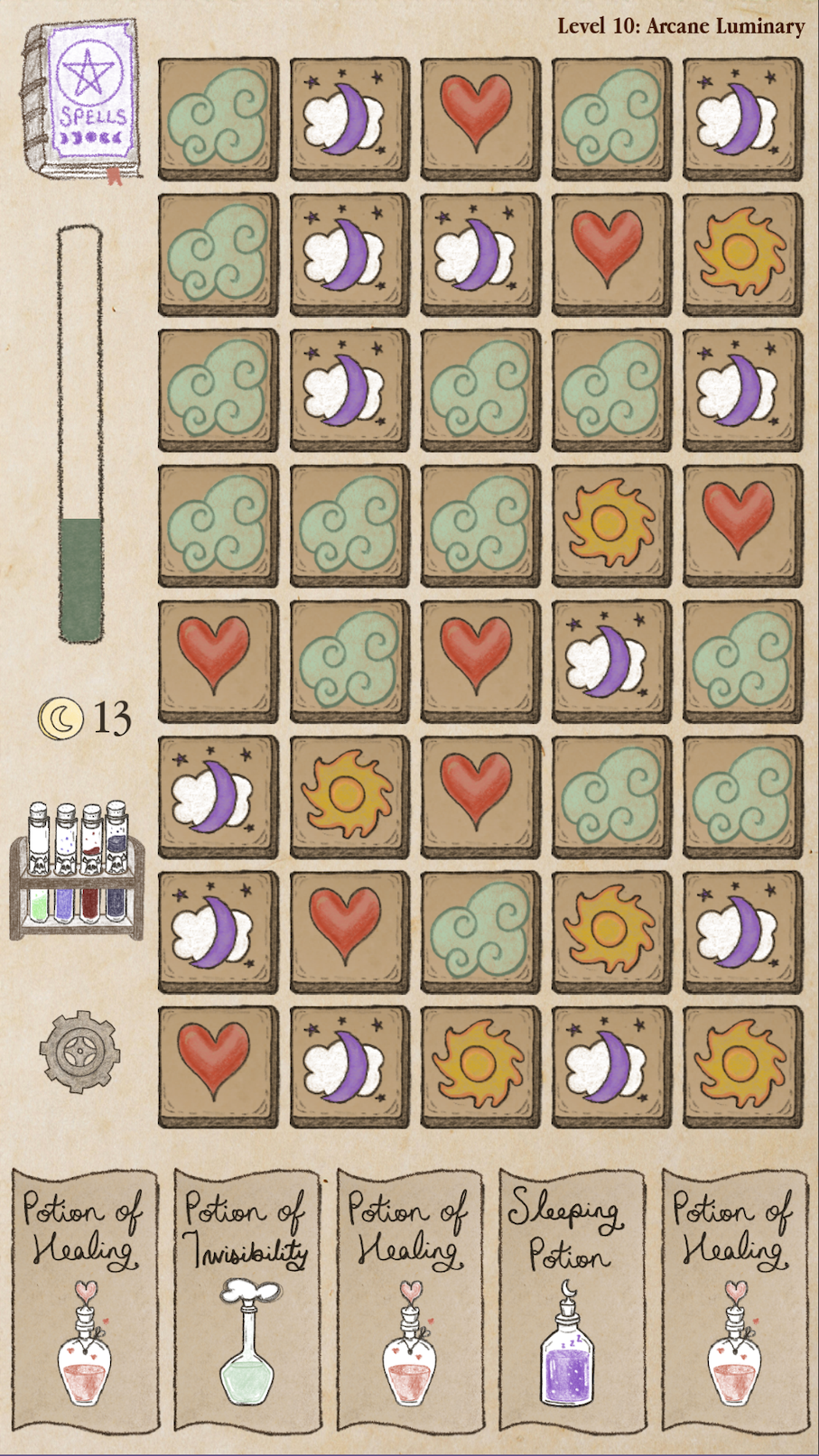 this will tell you what ingredients you need to brew this potion, follow the recipe, and clear all the cards.